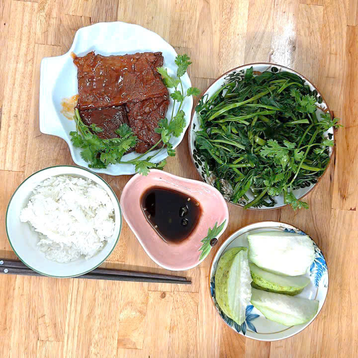 Gia vị chay: Dầu đậu nành, tương ớt, nước tương, đường, hạt nêm chay, xá xíu bột.